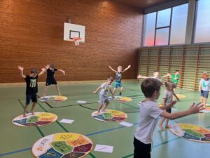 Wir starteten das Bewegungsprogramm „Kort-X“ an unserer Schule. Diese Sporteinheiten bieten ein umfangreiches Gehirntraining in Kombination mit Bewegungsabläufen und Musik. Um diese Übungseinheiten, welche in den kommenden Jahren weitergeführt werden, zu gewährleisten, mussten spezielle Bewegungsteppiche angekauft werden. Dies wäre nicht möglich gewesen, wenn uns nicht ein sehr engagierter Elternteil finanziell unterstützt hätte – vielen Dank!