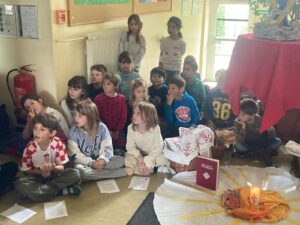 Feierlich wurde es auch zu Ostern – unsere Religionslehrerin Rebekka Sobottka organisierte eine kleine Osterandacht mit unserem Pfarrer Reinhard und überraschte uns mit einer Osterjause.