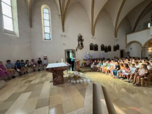 Am Donnerstag feierten wir unseren traditionellen Abschlussgottesdienst. In diesem feierlichen Rahmen verabschiedeten wir uns von den Kindern der 4. Klasse, die nun bald ihre Reise an der neuen Schule antreten. Auch die Viertklässler und Viertklässlerinnen selbst richteten sich mit einigen wertvollen Tipps und lieben Worten an uns. Es war ein schöner, berührender Moment, den wir sicher lange in Erinnerung behalten werden.
